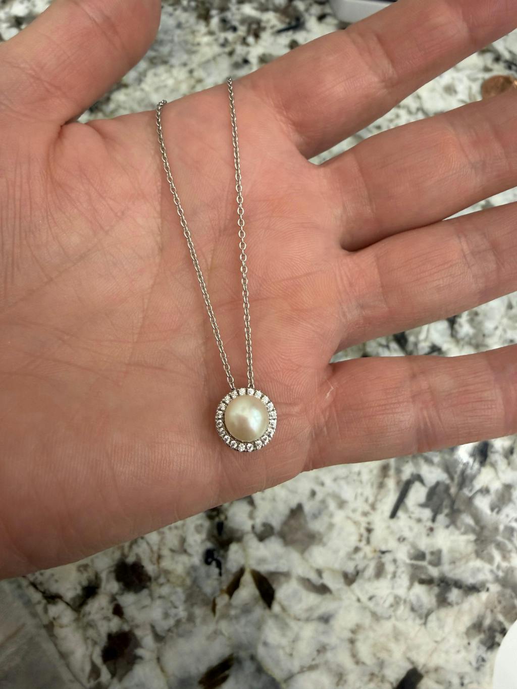 The necklace is perfect! The pearl is beautiful and I love it against the sterling silver setting! This jewelry is well made!