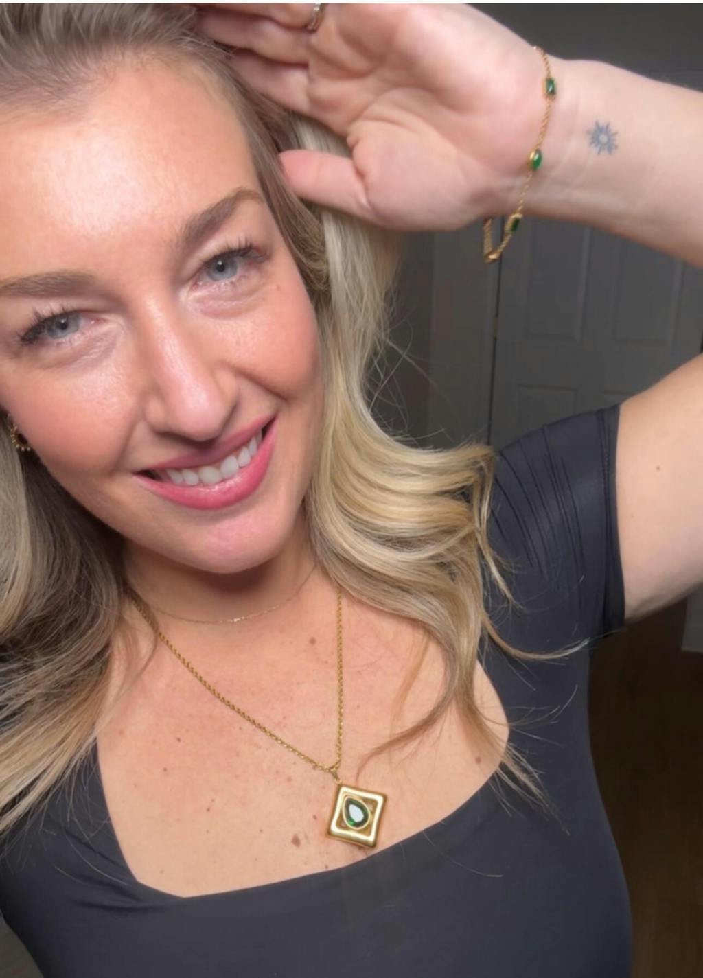 This is probably my favorite necklace I have purchased recently!! I love how it elevates every look- from simple athletic clothing to a nice date night outfit! It is so shiny and beautiful!